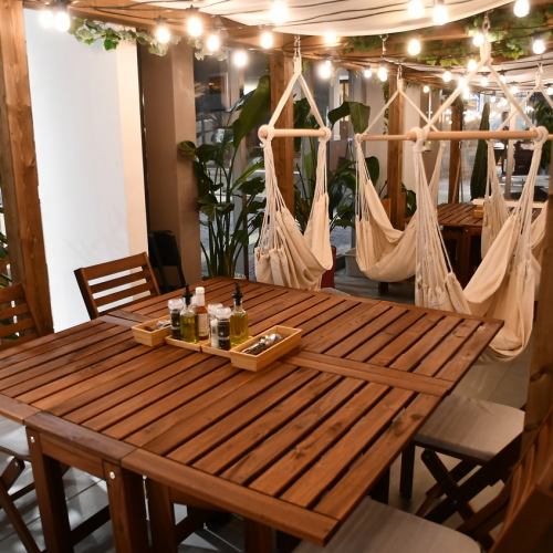 【ハンモックを中心にテーブル席もあり】